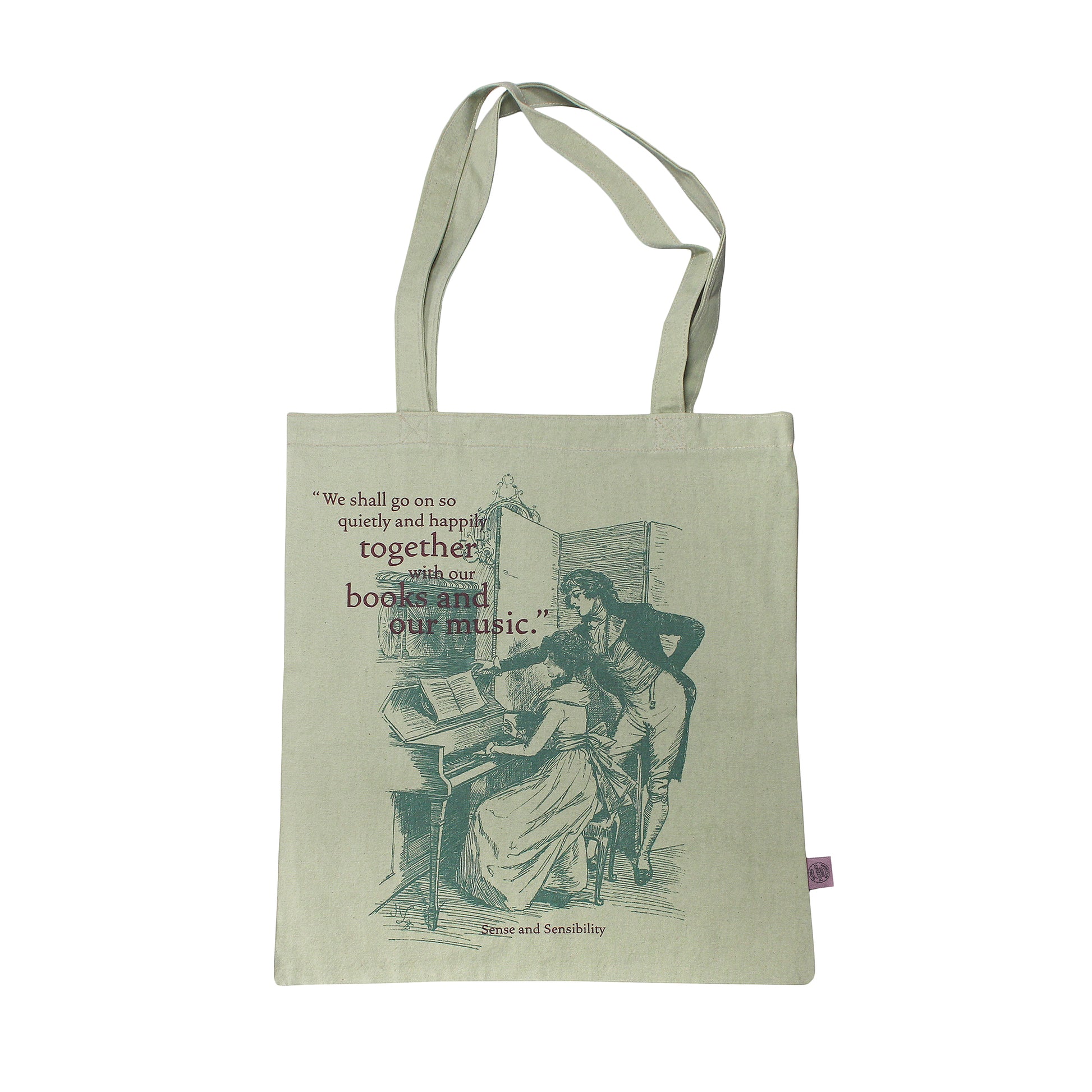 Inspired by Jane Austen's popular novel, Sense and Sensibility, it features an original illustration on the front, with the quote 'We shall go on so quietly and happily together with our books and our music'.