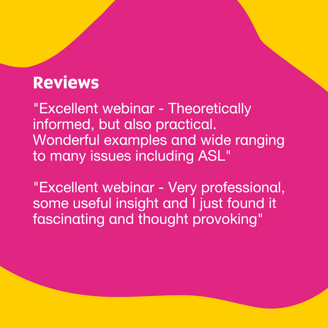 "Excellent webinar - Theoretically informed, but also practical. Wonderful examples and wide ranging to many issues including ASL"