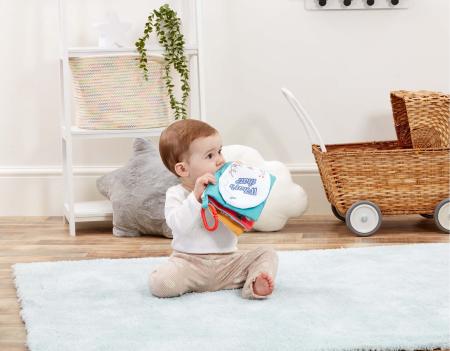 An ideal first book for baby both at playtime and story time, and with handy clip hook to attach to bags and prams, it also makes a great on the go activity toy to keep little ones entertained whilst out and about.